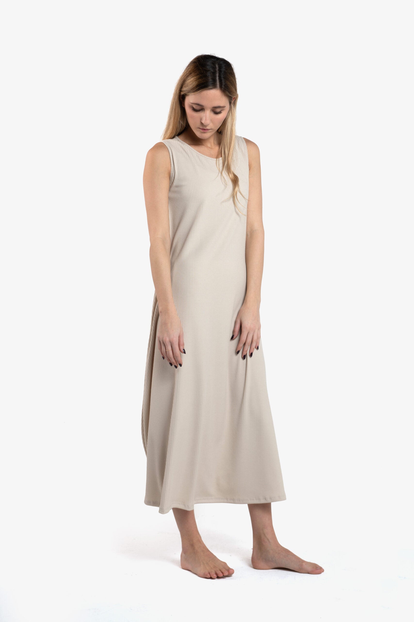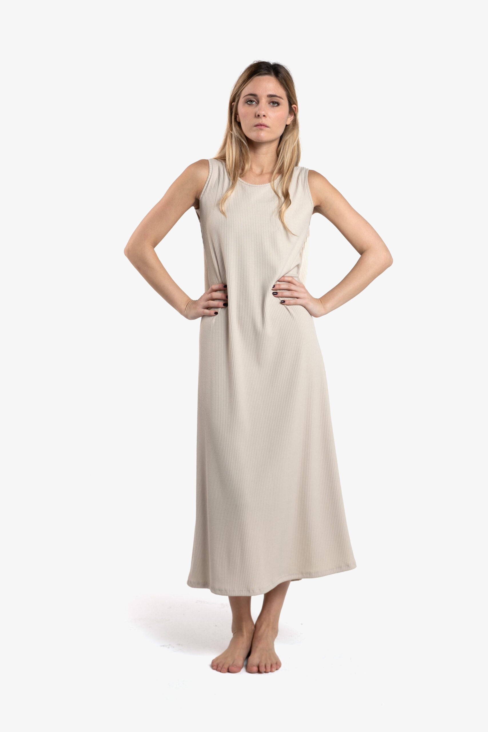 - Vestito in misto cotone smanicato