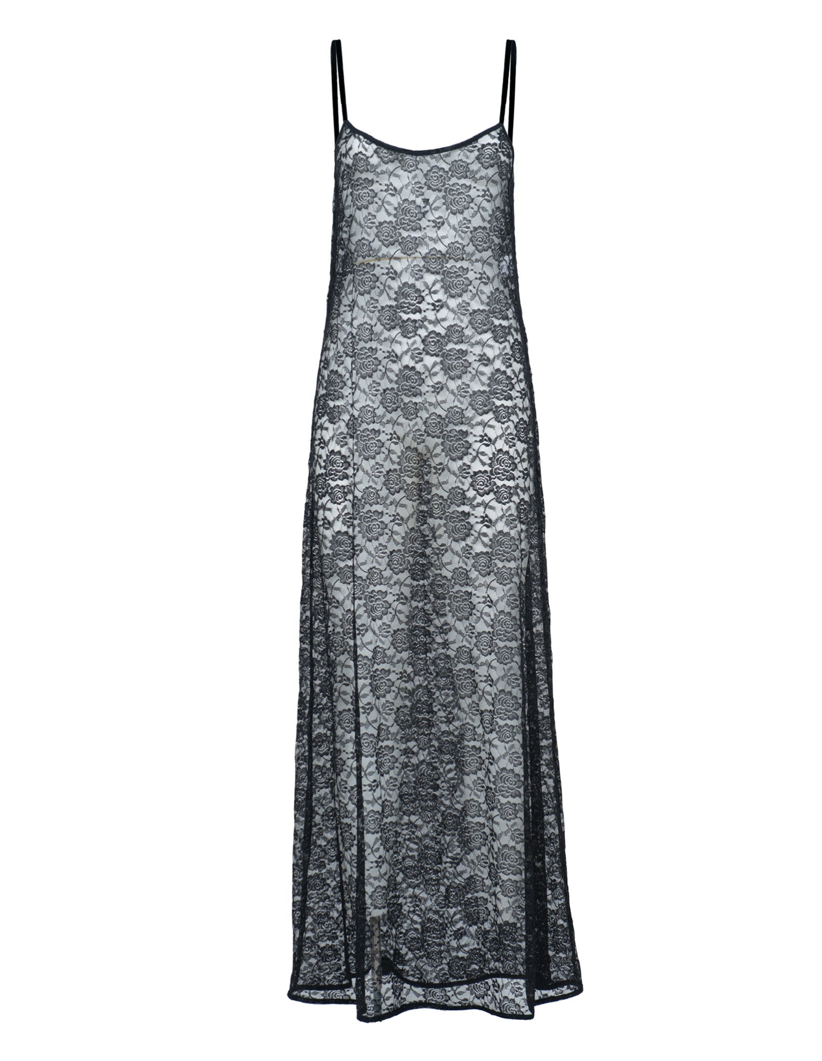 - Abito midi con spalline sottili realizzato al 100% in pizzo