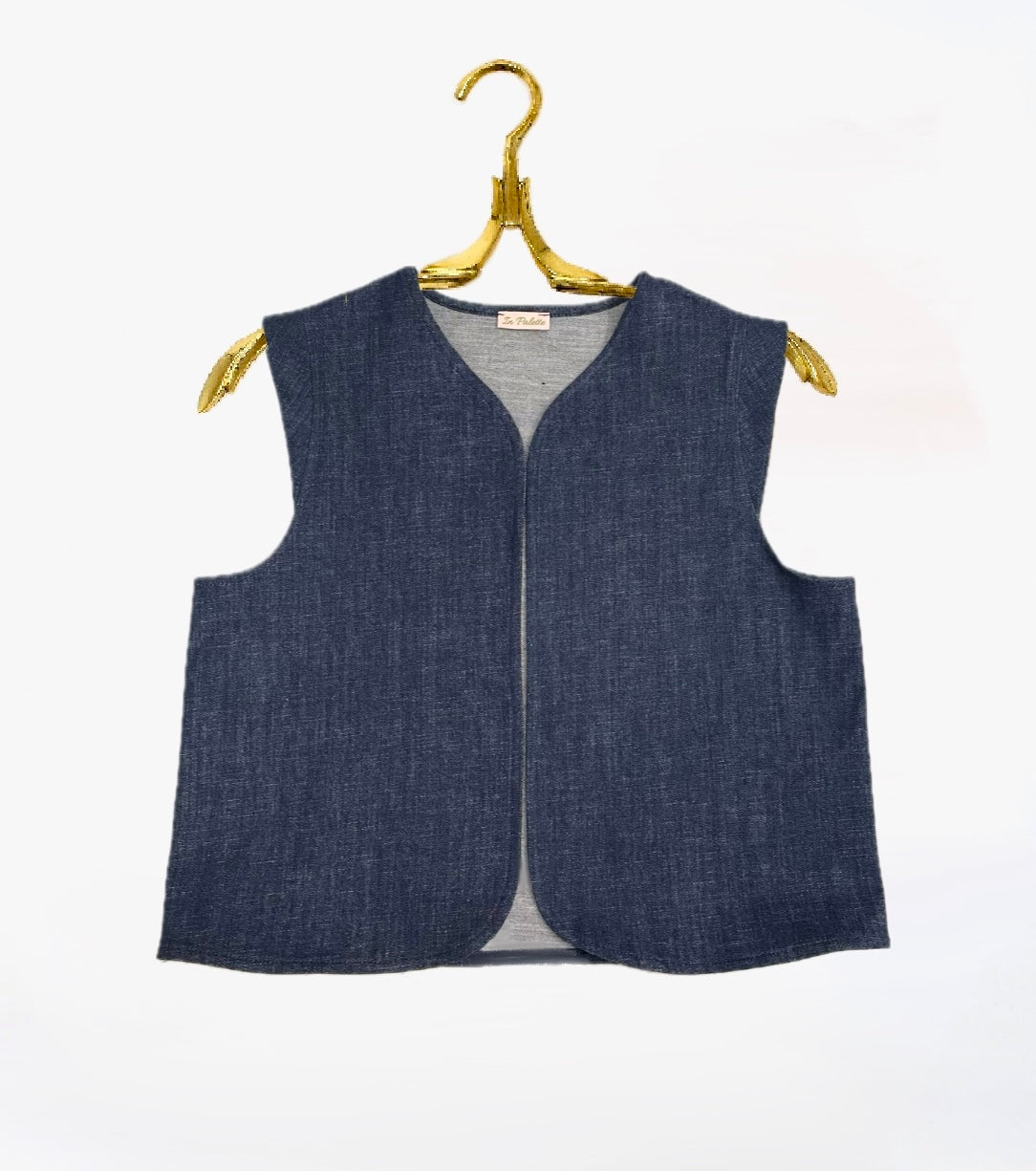 Gilet monopetto in denim con scollo a V versatile e alla moda perfetto per completare il tuo look casual con un tocco di freschezza.